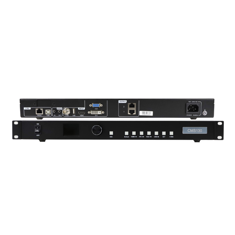 O CMS130 é um controlador tudo-em-um de hardware puro, fácil de operar, que integra processamento de vídeo e controle de tela LED em uma única unidade. Com múltiplas entradas de alta definição, recursos profissionais e gabinete de nível industrial, é ideal para instalações em shoppings, hotéis, centros de exposição e estúdios de TV.